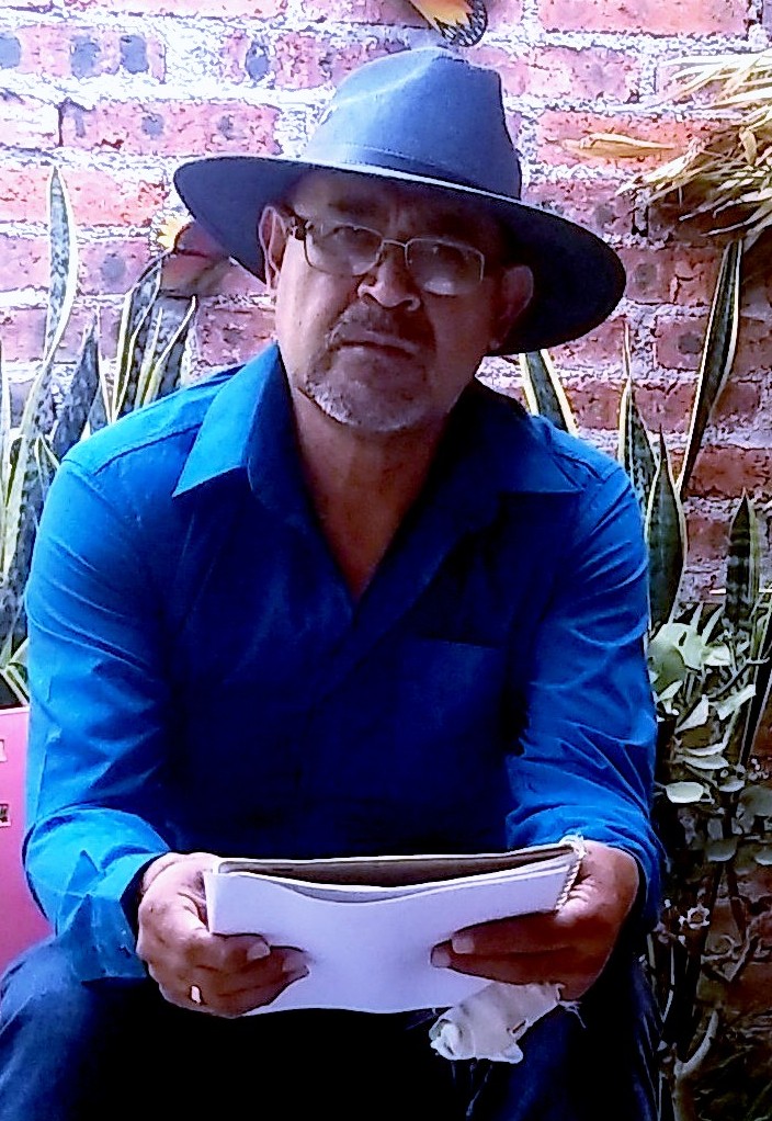 Gilberto Navarro Camacho. Nació el 21 de agosto de 1958 en Abasolo, Guanajuato, México. Es Coordinador Municipal de Tertulias Literarias de Abasolo en la Red Estatal de Tertulias Literarias de Guanajuato “José Luis Calderón Vela.” Ha participado en antologías de los estados de Hidalgo, Veracruz, Puebla, Zacatecas, Baja California Norte y Guanajuato. Ha editado nueve poemarios de manera independiente, así como su libro de cuentos y relatos denominado “Al canto del gallo”. El poema publicado está incluido en la colección “Las Plumas Poéticas del Cisne Negro”.
